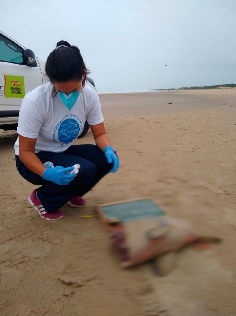 A equipe de monitoramento da Udesc registrou um caso atípico no sábado. Uma carcaça de uma toninha (Pontoporia blainvillei) com mutilação severa feita por objeto perfurocortante. A carcaça foi encaminhada à Unidade de Estabilização de Fauna marinha, onde foi realizada necropsia e análises complementares.