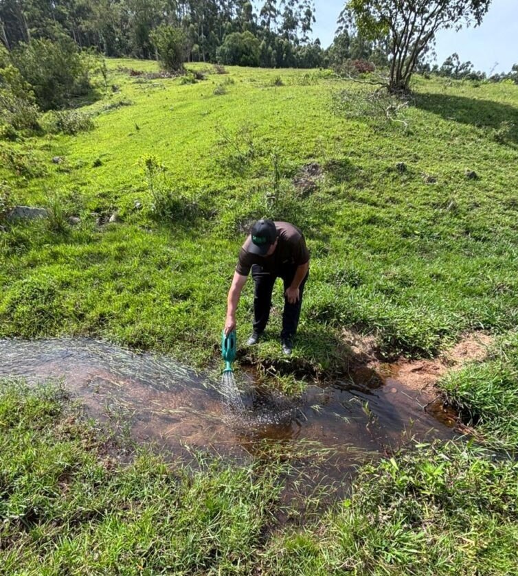 A Secretaria Municipal de Pesca e Agricultura de Laguna, em parceria com representantes das comunidades locais, realizou na segunda-feira (8) uma operação de controle biológico do borrachudo no Distrito do Ribeirão. A ação consistiu na aplicação de um larvicida de origem biológica nos corpos hídricos da região, medida reconhecida como segura, sustentável e eficaz no combate ao inseto.