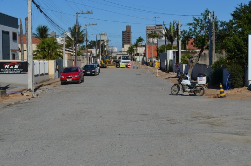 Acesso da nova ponte sobre o Rio Tubarão pela margem esquerda, no bairro Revoredo, a rua Padre Nóbrega recebe os últimos preparativos para a pavimentação asfáltica. Com a finalização da base e sub-base, nos próximos dias será feita a aplicação de piche no trecho entre a marginal da BR-101 e a avenida Getúlio Vargas, no cruzamento com a cabeceira da ponte.
