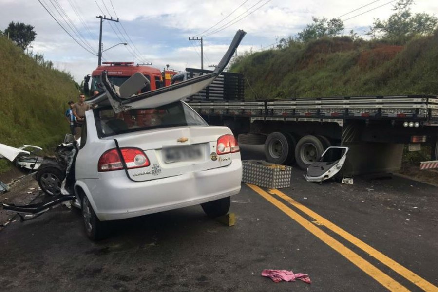 As duas pessoas que ficaram feridas estavam no carro. O motorista, que precisou ser retirado das ferragens, sofreu fraturas no braço e na perna. O passageiro apresentou escoriações e estava consciente e orientado. Ainda de acordo com a corporação, o motorista do caminhão não ficou ferido.