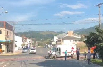 Um acidente de trânsito foi registrado na manhã desta segunda-feira (4), em Braço do Norte. O Corpo de Bombeiros foi acionado para atender a ocorrência por volta das 10h10, na rua Governador Jorge Lacerda, bairro INSS.