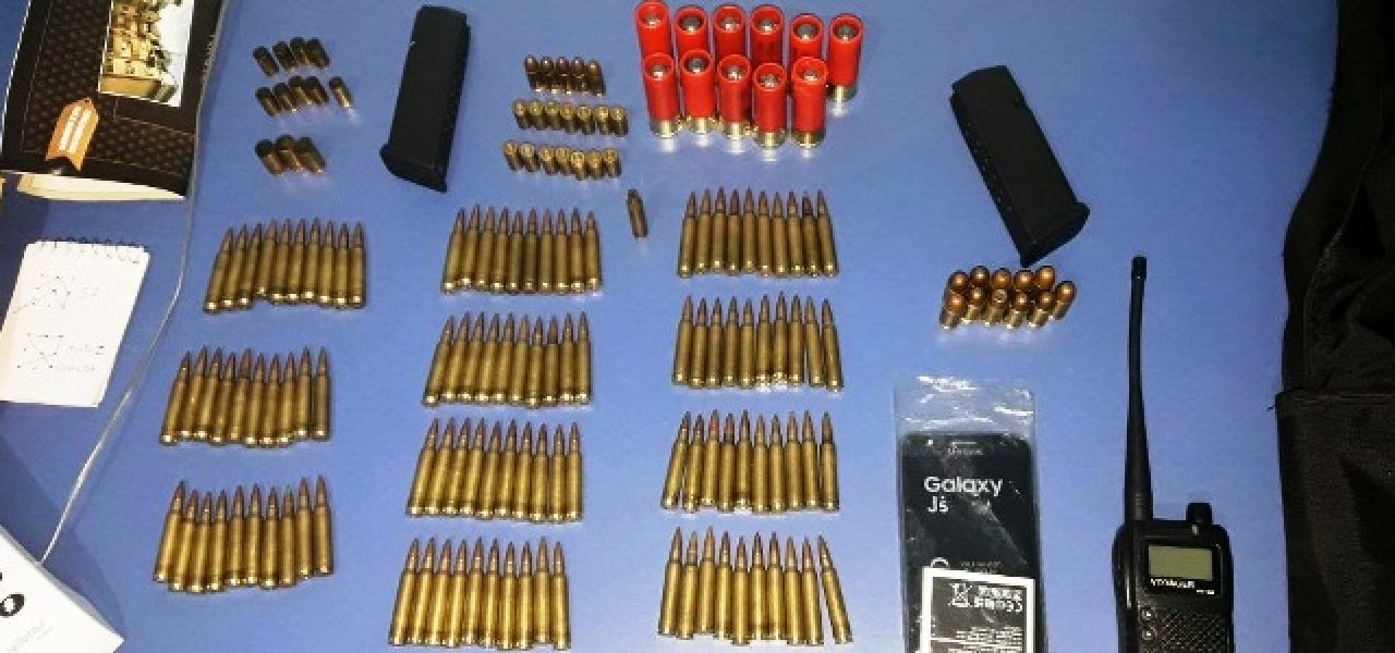 Em uma abordagem, foram encontradas com as jovens um carregador de pistola Glock calibre 45 com 11 munições e um rádio comunicador
