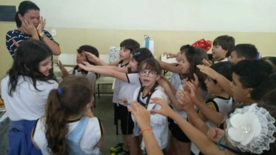 No intervalo da aula, a coordenadora da escola chamou a professora e os alunos. Ao chegar à sala onde havia sido preparada a surpresa, a professora não conteve a emoção. “Comecei a chorar quando vi que era um chá de bebê. Me emocionei ainda mais quando as crianças colocaram as mãos em direção à minha barriga e começaram a fazer uma oração.”