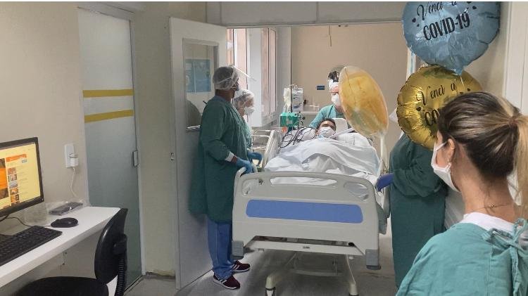 Ele foi transferido para a UTI no dia 5/3, já em ventilação mecânica. Foram 25 dias de terapia intensiva. Hoje ele saiu do setor e recebeu o carinho da equipe assistencial, da esposa Suzana Fortunato Souza de Mendonça Fileti e da irmã Giovana Gomes dos Santos.