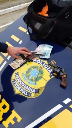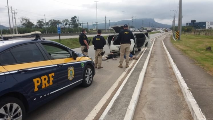 A dupla foi presa pela Polícia Rodoviária Federal (PRF), por volta das 14h30, em Palhoça.