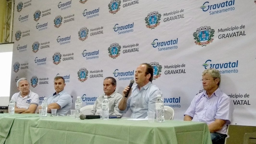 A Gravatal Saneamento, empresa do Grupo Atlantis, vai investir mais de R$ 38 milhões na melhoria do sistema de abastecimento de água e tratamento esgoto do município, durante o período de 30 anos de concessão, iniciada no mês passado. Deste total, cerca de R$ 7 milhões serão injetados nos cinco primeiros anos para garantir um salto de qualidade para o município. Nos próximos 120 dias, ações emergenciais serão realizadas para resolver problemas nos bairros que sofrem com a falta de abastecimento de água. Estes e outros benefícios para as comunidades de Gravatal foram apresentados em audiência pública organizada pela prefeitura, na quinta-feira, no auditório do Salão Paroquial, com a presença do prefeito Edvaldo Bez de Oliveira, do diretor da Atlantis Saneamento, Anderson Botega, vereadores, secretários municipais, lideranças da comunidade e técnicos da Gravatal Saneamento.