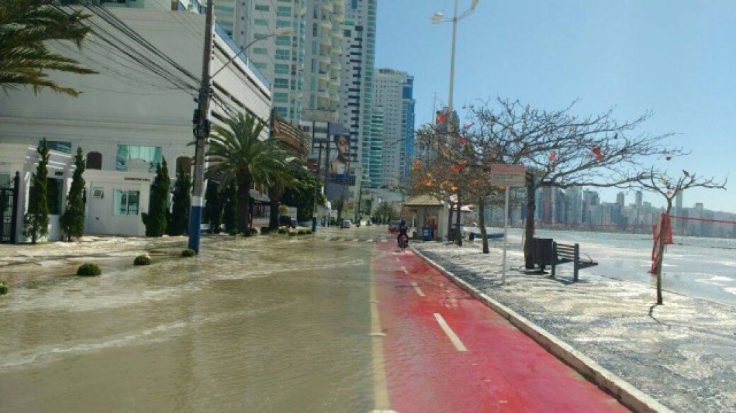 Nesta sexta-feira à noite (17) e neste sábado (18), a atuação de vento do quadrante Sul e ondas altas com picos de 2,5 a 3,0 metros podem ocasionar alagamentos nas áreas mais baixas da costa catarinense. O vento Sul causa o empilhamento da água marinha na costa devido à chegada de um sistema de alta pressão (massa de ar seco e frio).