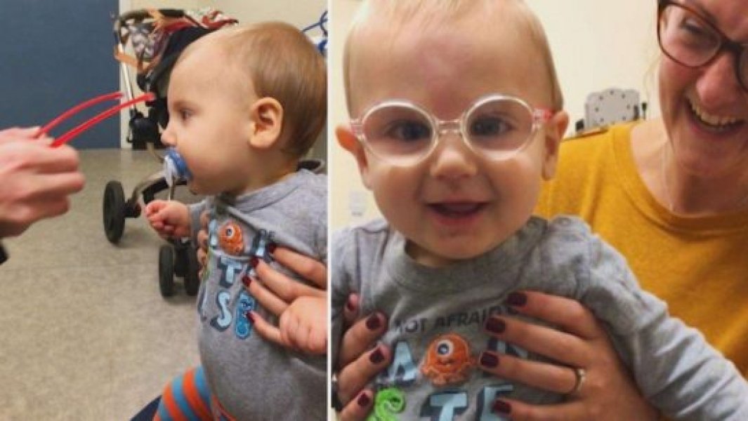 Após duas semanas se recuperando de uma cirurgia de remoção de catarata nos dois olhos, o pequeno Theo Bennett, de 7 meses de idade, enxergou com nitidez pela primeira vez em sua vida. No colo da mãe, ao colocar os óculos novos, Theo focou no pai, e surpreso, abriu um lindo sorriso no rosto ao vê-lo sorrindo de volta para ele.