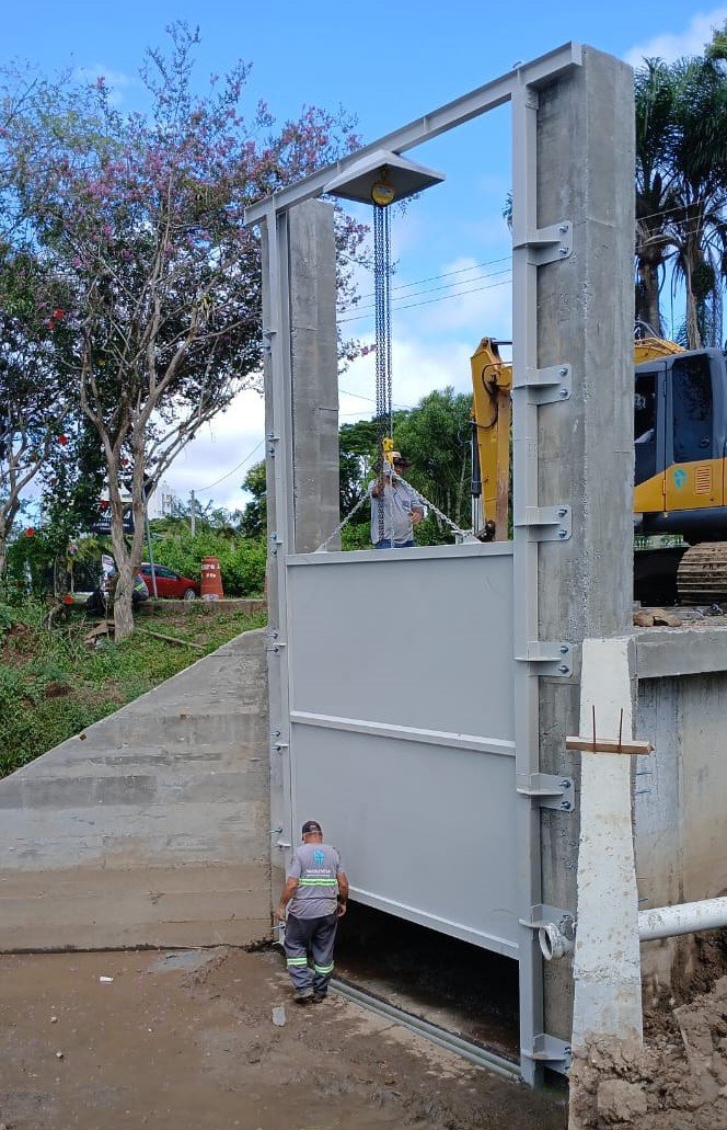 R$ 101 mil destinados à construção da comporta em estrutura metálica e concreto armado, com área de 12,71 m², essencial para o controle das águas;