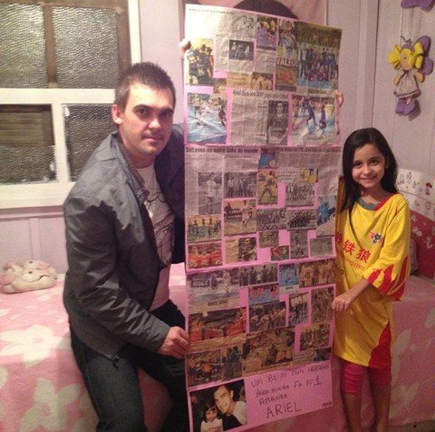 Desde muito pequena, Amanda ia com o pai aos jogos de futsal, e Ariel foi o jogador com quem a menina mais se identificou desde então. A garota coleciona fotos e recortes das matérias veiculadas em jornais da região onde o atleta aparece.