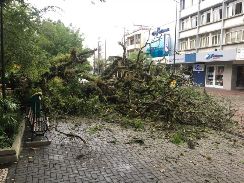 Uma árvore de grande porte caiu na Praça Nereu Ramos, em Criciúma, na manhã deste domingo (3). A praça é conhecida por ser arborizada com árvores muito antigas, tanto que há alguns dias a Fundação do Meio Ambiente da cidade informou que existem muitas árvores que correm risco de cair naquele local.
