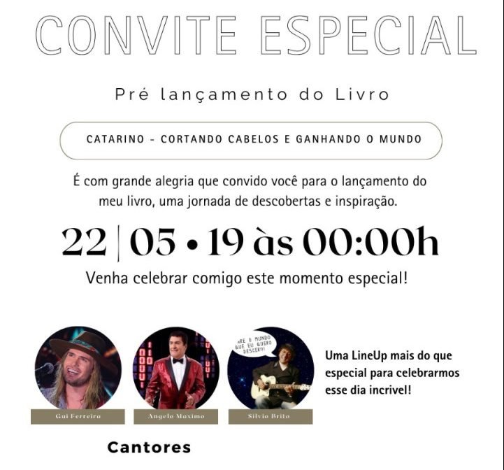 Este evento será uma oportunidade única para conhecer mais sobre a obra e interagir com o autor. Acompanhe o lançamento do livro “CATARINO: Cortando Cabelos e Ganha o Mundo”.