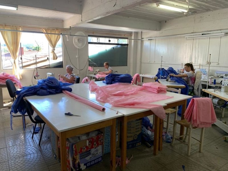 Desde terça-feira, (24), até a tarde desta quarta-feira (25), cerca de 80 aventais descartáveis de TNT já foram confeccionados. A confecção é uma parceria entre a Secretaria de Assistência Social e Secretaria da Saúde, atendendo a uma solicitação do secretário Sérgio, já que a demanda é bastante alta, o produto está em falta no mercado e, desta maneira, a entrega é mais ágil. “Só temos a agradecer, pois, de imediato as profissionais se dispuseram a cortar e costurar os aventais”, explicou a secretária de Assistência Social, Gisely Heidmann Perin Meurer.