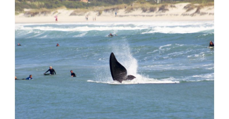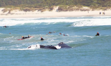 Em Imbituba, surfistas foram tiveram que dividir o mar com duas baleias-franca que estavam bem próximas à costa da Praia do Rosa Norte. A presença de um filhote acompanhado da mãe tirou o fôlego de quem estava na água e também na beira do mar.