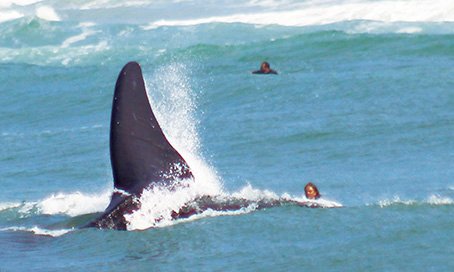 Não dá para ter certeza dos motivos reais da aproximação. Mas de acordo com Karina Groch, do Instituto Australis, com análise no comportamento das baleias que migram anualmente para o litoral sul de Santa Catarina, o filhote se aproximou dos surfistas por curiosidade e a mãe foi atrás para garantir que não encalhasse na beira da praia.