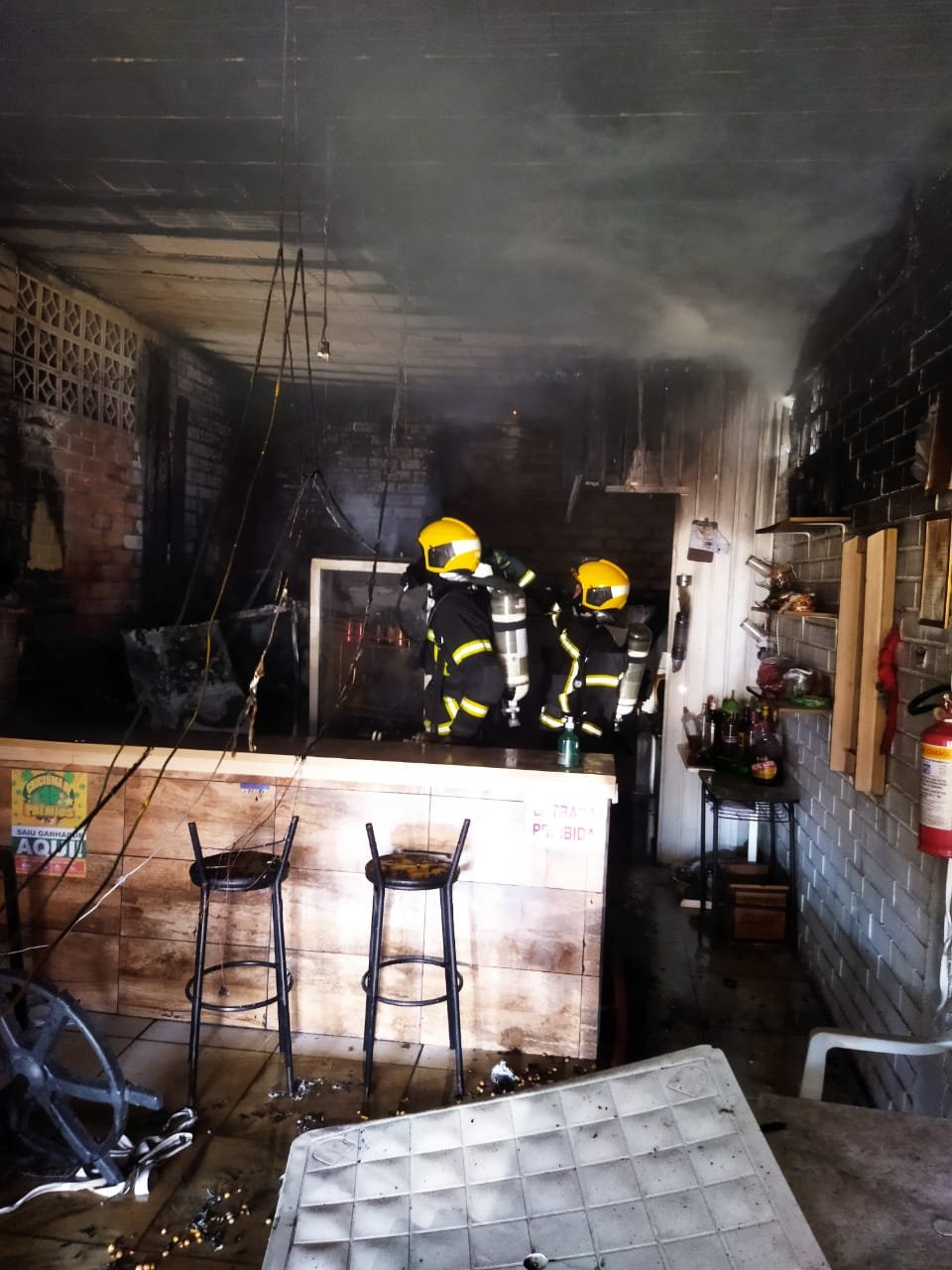 O fogo destruiu a parte nos fundos do bar, eletrodomésticos, mesas e parte do teto. O acesso foi realizado pela porta principal que já estava aberta. Ela foi arrombada por populares que verificaram o incêndio primeiro.