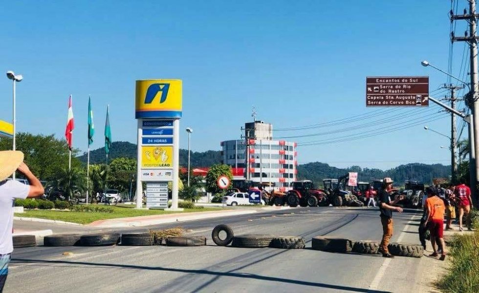 A carreata de tratores que passou nesta manhã no Cento de Braço do Norte foi para dar apoio à manifestação dos caminhoneiros. Os tratoristas saíram do Pinheiral em direção ao trevo e as informações que se tem é que no momento eles estão em frente ao posto Leão do Tevo.