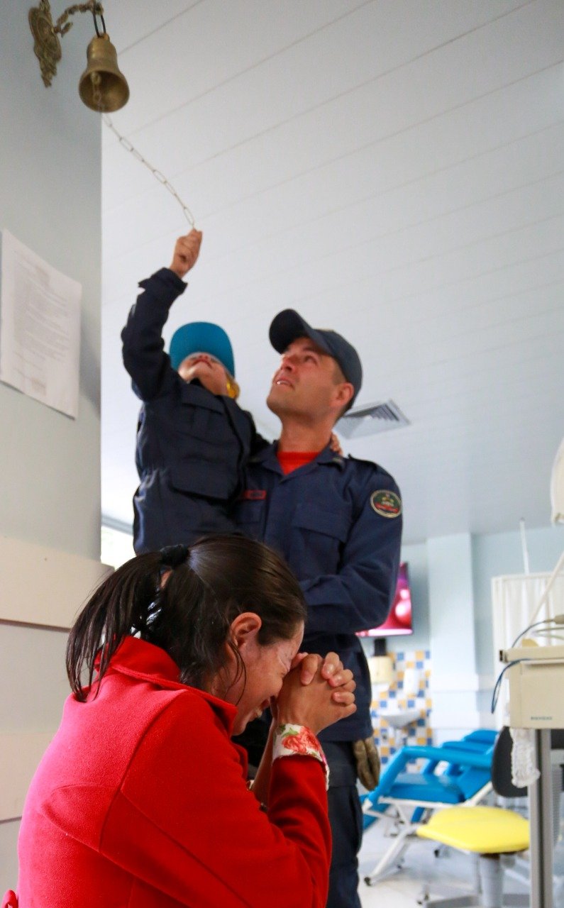“É um serviço de referência em Santa Catarina. O sino é uma iniciativa das médicas e das enfermeiras do serviço de oncologia pediátrica do hospital e é batido no término do tratamento e na alta do paciente. O sentimento é de muita emoção e gratidão; é um preenchimento completo do espírito dos profissionais”, destaca. A partir de agora, o pequeno Cláudio Gabriel fará apenas o acompanhamento de saúde e, aos poucos, o valente garotinho vai poder voltar a ir para a escola, brincar com os irmãos e os amigos e se preparar para, quando ficar grande, ser um bombeiro!