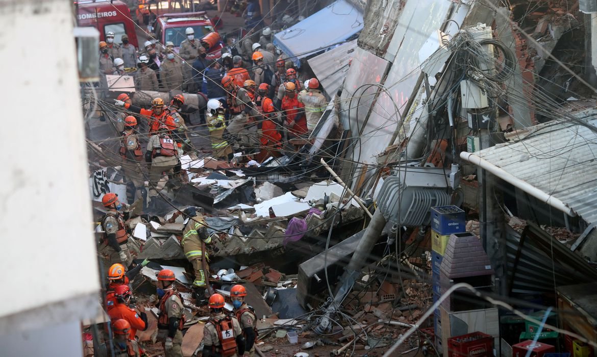 Nos escombros estão atuando bombeiros do Grupamento de Busca e Salvamento, especializados em resgates e desabamentos. Eles contam com o apoio de cães farejadores do Grupamento de Cães de Magé, treinados para localizar vítimas desses tipos de tragédias.