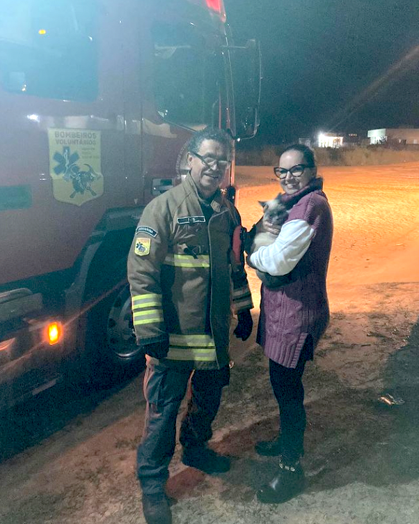 Já era noite e ela não sabia mais o que fazer para pegar sua gata de cima de um árvore. O fato ocorreu na RuaErnesto Lacomb, no Centro de Jaguaruna. Com um misto de desespero e vergonha, ela resolveu pedir auxílio para quem nunca nega ajuda: os bombeiros! E lá foi a guarnição, afinal é uma vida e há uma pessoa pedindo ajuda. A felina subiu na árvore e não conseguia mais descer. Com muito cuidado, um dos profissionais resgatou a bichana e a entregou para a tutora. A gata estava assustada, mas sem ferimentos. Logo se aninhou no colo da mulher e o entregou para a dona.