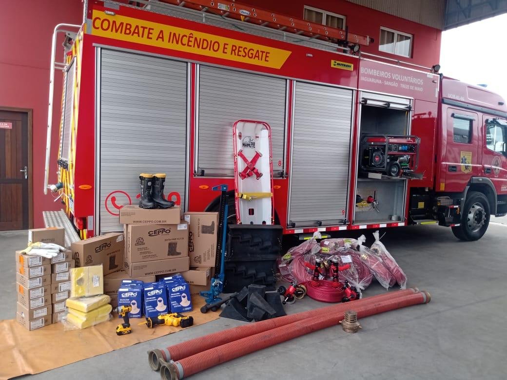 Os novos equipamentos adquiridos pelos Bombeiros Voluntários de Jaguaruna para melhorar a atuação dos atendimentos de combate a incêndio e resgate já estão em uso. O investimento foi possível a partir de dois projetos apresentados para as prefeituras de Jaguaruna, sede da corporação, e Sangão. Cada município fez o repasse de R$ 20 mil, em um total de R$ 40 mil. Hoje os Bombeiros Voluntários assistem as cidades de Jaguaruna, onde fica a sede, Sangão e Treze de Maio, além de prestarem apoio para outras entidades como Samu e Corpo de Bombeiros Militar.