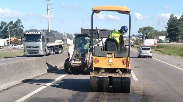 Criciúma / Maracajá: correções emergenciais localizadas no pavimento entre os kms 390 e 405 – ambos sentidos de pista. Entre 7:00h e 17h