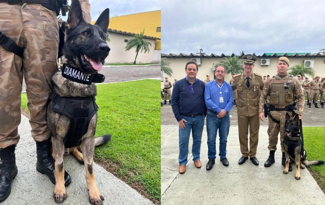 O cão Diamante tem 1 ano e 8 meses, é da raça Pastor Alemão e de pelagem cinza. Os cães terão a missão de contribuir com a segurança pública não só no combate ao tráfico de drogas, mas também na localização de pessoas desaparecidas e na proteção em serviço de guarda.