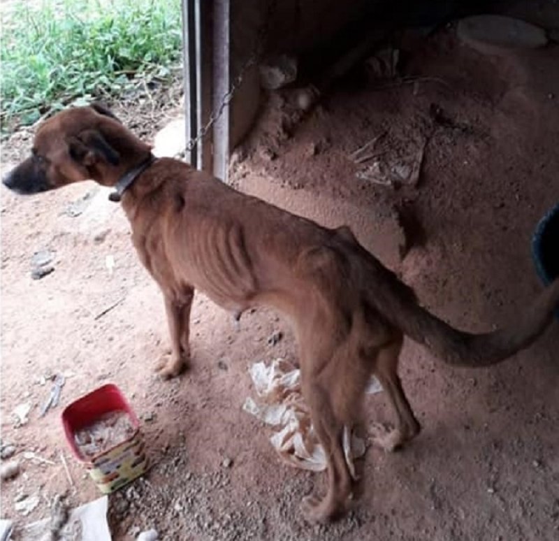 Ao chegar no local, a Polícia Militar juntamente com integrantes da Fundação do Meio Ambiente – FAMOR e da Ong Pet Lovers, encontraram uma cadela magra, abaixo do peso normal, presa em uma corrente curta, sem comida e sem água. Junto dela, estavam sete filhotes, sendo um deles já morto.