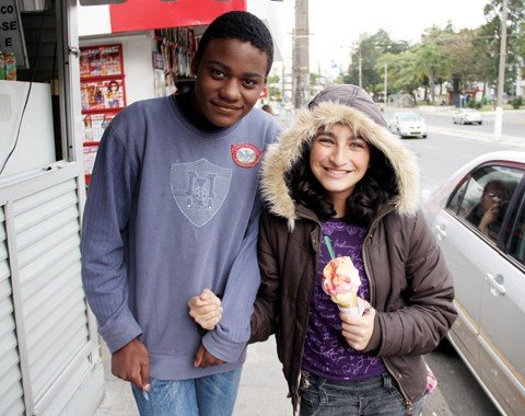 Os estudantes Emily Pavanati Alves, 14 anos, e Edson Luiz da Cruz Júnior, 16, não dispensaram um sorvetinho, mesmo com a temperatura por volta dos 18°C, às 15 horas ontem. Isso é bom para os sorveteiros, cujo movimento não estava muito bom nos últimos tempos. Muitos setores dependem da 'volta' do solzinho para aquecer a economia. Agora, é ficar na torcida.