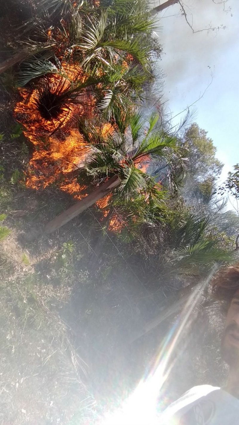 O Incêndio desta quinta-feira, com suspeitas de ter sido criminoso, consumiu seis hectares de mata onde estão localizados os pés de butiá, planta nativa da Mata Atlântica catarinense e que é protegida pela legislação.