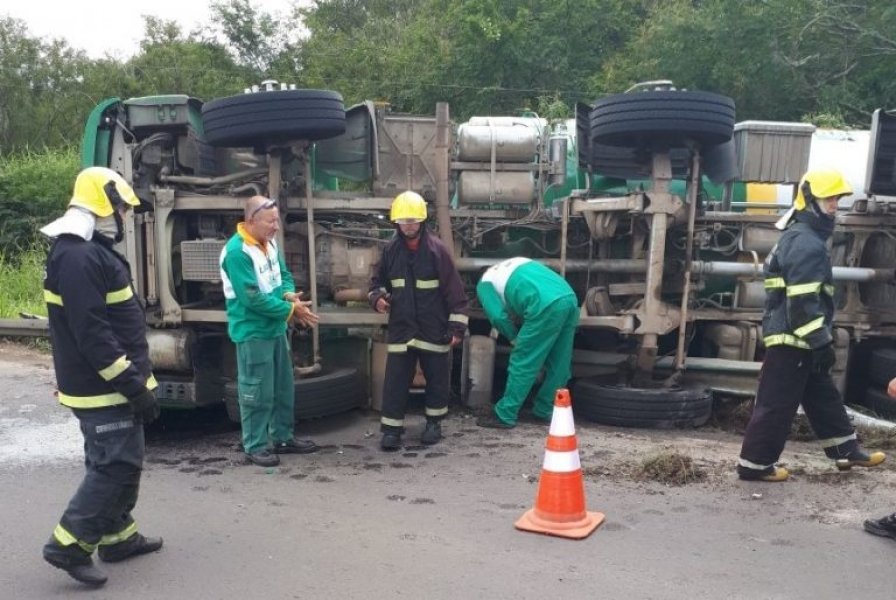 Um caminhão tanque, carregado com gás de cozinha (GLP – gás liquefeito do petróleo) tombou na manhã desta segunda-feira (16), na SC-447, em Meleiro. O motorista teria perdido o controle da direção do veículo em uma curva.