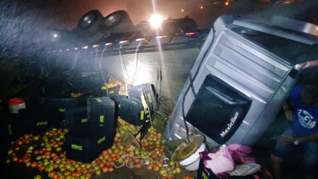 Um caminhão de Porto Alegre carregado de tomates tombou na BR-101 na madrugada deste domingo na localidade de Morro Grande, em Sangão. Segundo a Polícia Rodoviária Federal (PRF) de Tubarão, o acidente foi registrado no km 359, no sentido Sul da rodovia.