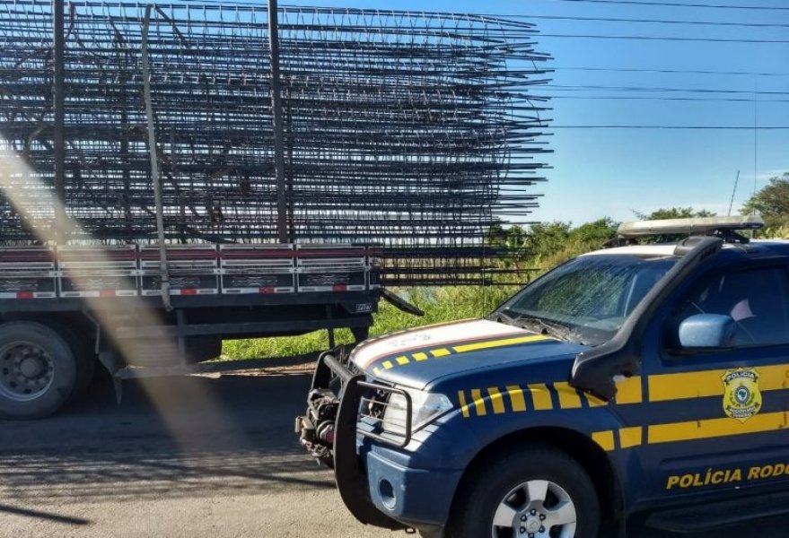 Policiais rodoviários federais flagraram na manhã desta quinta-feira (12), na BR-101 em Tubarão, um caminhão transportado barras de ferro projetadas cerca de um metro e meio para fora da parte traseira da carroceria.