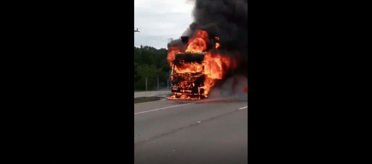 Um caminhão pegou fogo na BR 101, em Laguna, na tarde desta sexta-feira. A ocorrência foi por volta das 14 horas na altura do bairro Bentos.