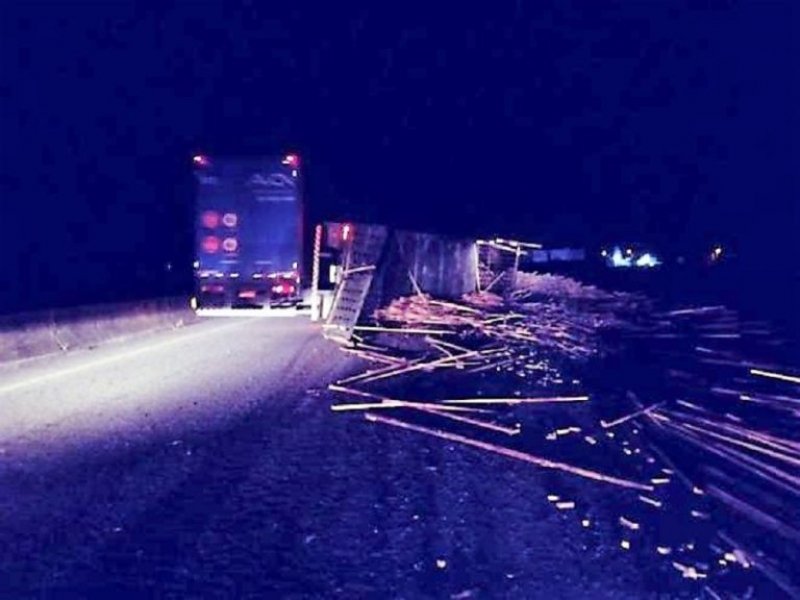 Por volta de 2h20min desta quinta, um caminhão com ripas de madeira tombou no km 294, no trecho entre Alto Arroio e Itapirubá, sentido Norte. Conforme a Polícia Rodoviária Federal (PRF) de Paulo Lopes o motorista não se feriu.