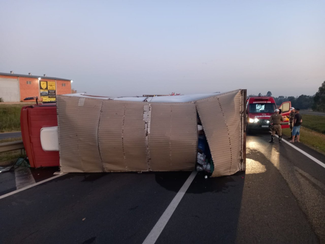 Dois caminhões colidiram no fim da tarde desta segunda-feira (1), por volta das 17h40min, no km 2700 da Via Rápida, no bairro Poço Oito, em Içara. Um dos veículos era conduzido por um homem de 45 anos. Ele não teve ferimentos. O outro era dirigido por um senhor de 65 anos. Com a batida, o caminhão tombou sobre a pista. O motorista teve um corte no antebraço e estava com os batimentos cardíacos alterados.