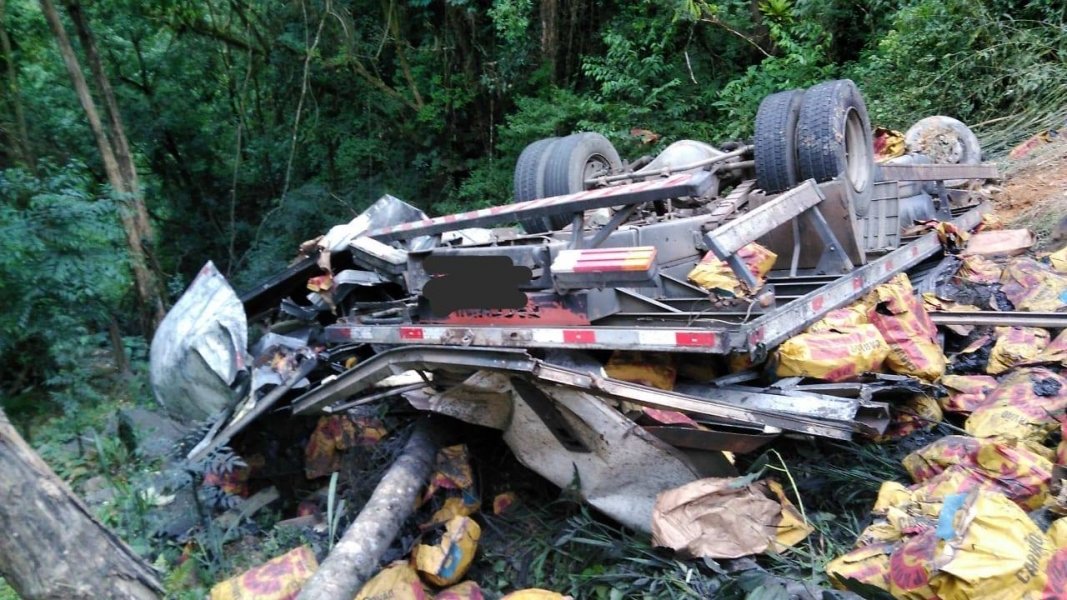 Um caminhoneiro, identificado como Dijelmas Sousa, morreu após um capotamento às margens da SC-477, em Doutor Pedrinho, no Vale do Itajaí.