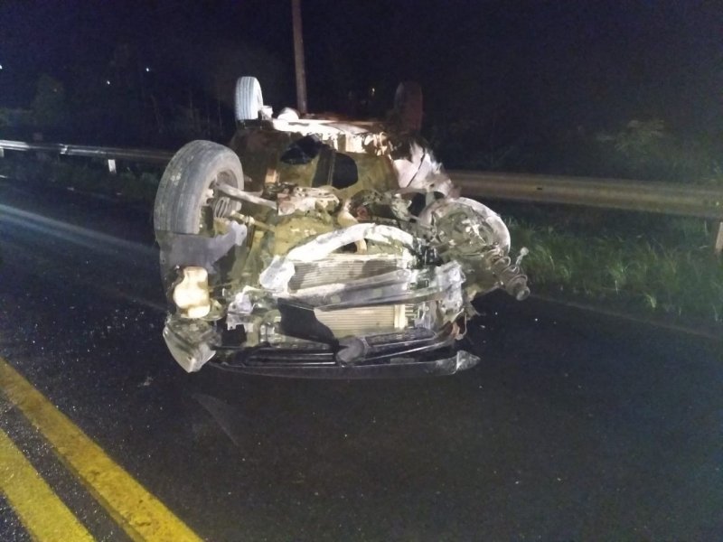 Conforme informações, um cão sobre a pista fez o condutor perder o controle do carro, colidiu na mureta da ponte e capotou. Os bombeiros precisaram fazer a sinalização da via até a chegada da Polícia Militar Rodoviária Estadual, pois o veículo ficou sobre a pista.