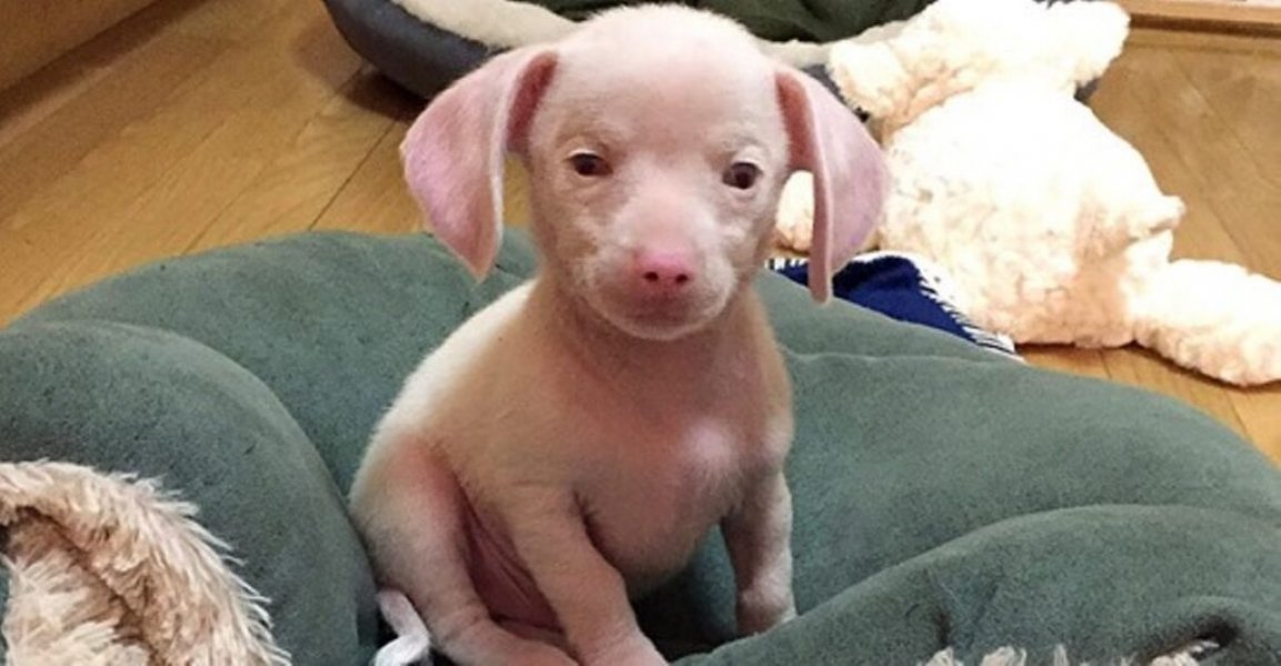 Um filhote de cachorro cor-de-rosa chamado ‘Piglet’ (em referência ao personagem “Leitão”, de Ursinho Pooh) tornou-se um símbolo de aceitação e inclusão para as crianças nos EUA.