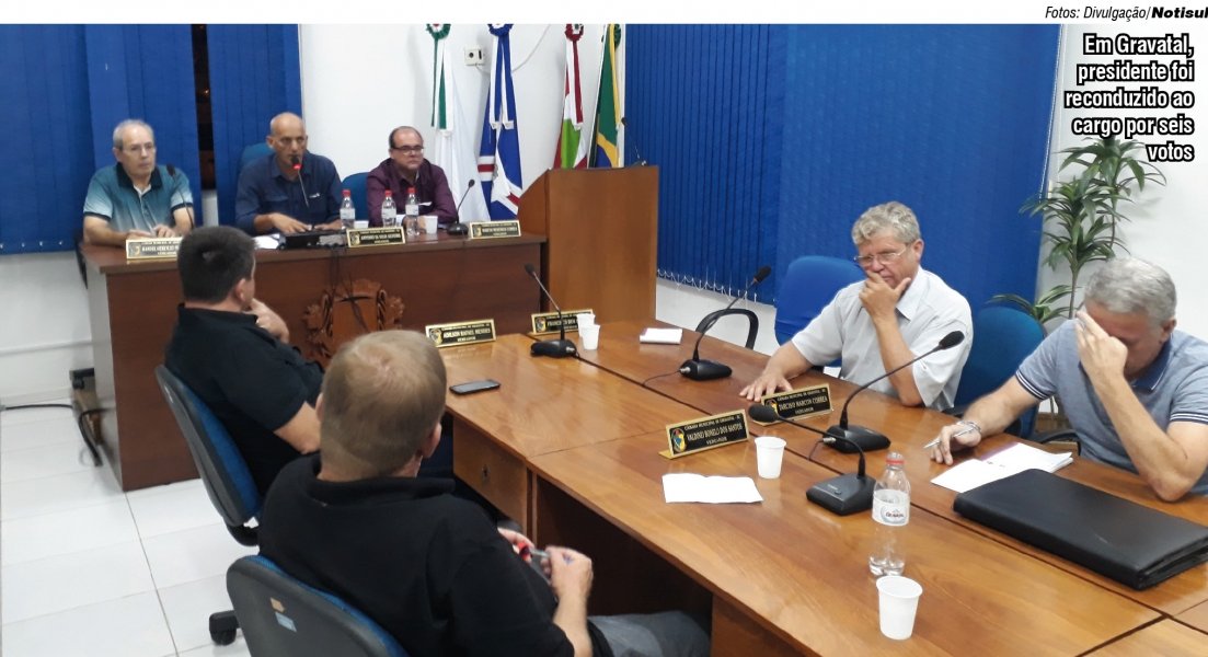 Em Gravatal, o presidente Antônio da Silva Silveira (PP) disse que foi ao fórum na segunda-feira para assinar o mandado de segurança. “Nunca passamos por situação parecida. Mas decisão judicial se cumpre”, diz. O vereador Manoel Ferreira (PSDB), o mais velho da casa, assumiu a presidência e convocou, no mesmo dia, nova votação, que ocorreu durante a sessão ordinária.