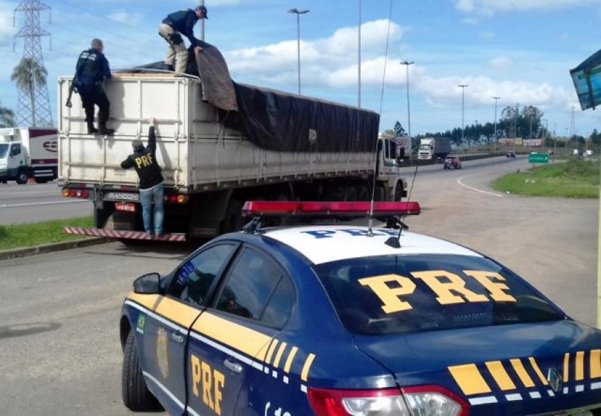Ao consultarem as placas da carreta, os policiais constataram que o caminhão-trator e o semi-reboque transitavam com placas falsas. Os dois veículos são originalmente registrados em Colorado/PR, mas transitavam com placas de Canoas/RS.