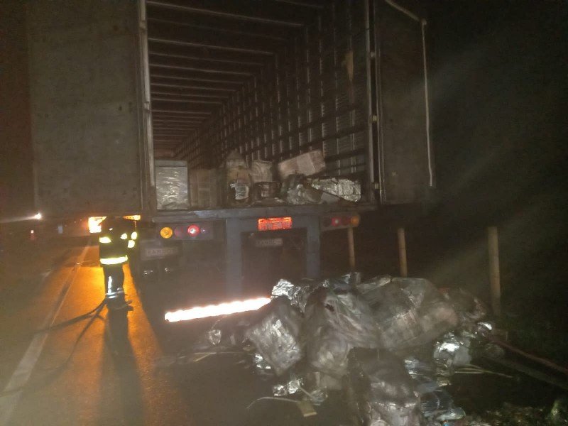Um incêndio destruiu parte da carga de uma carreta na madrugada desta quinta-feira (8) na BR-101 em Içara. A ocorrência foi registrada por volta das 4 horas, no bairro Vila Nova.