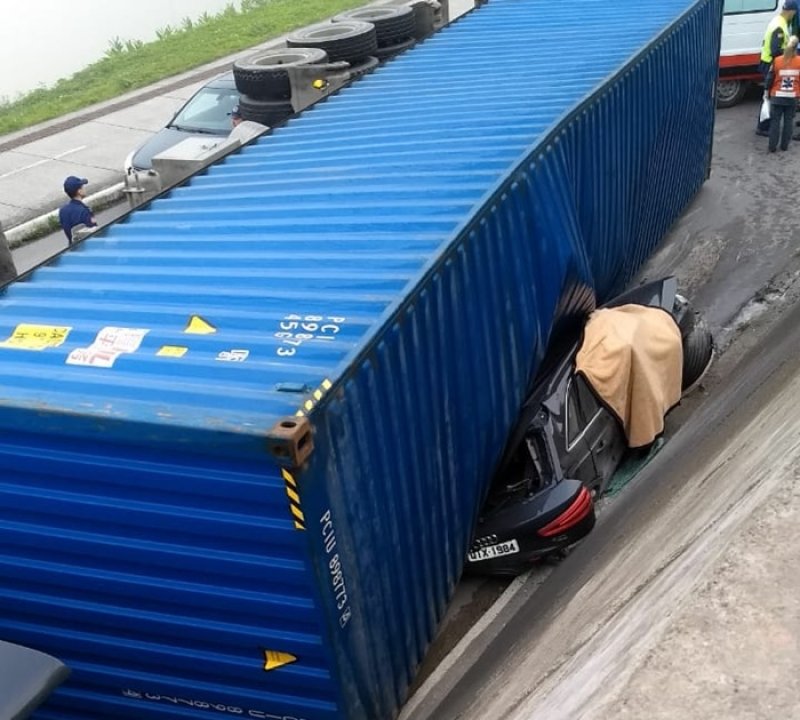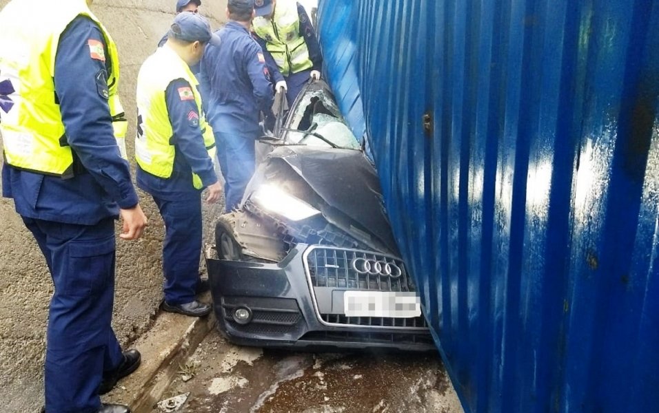 Uma carreta tombou e caiu sobre um Audi, com placas de Brusque, por volta das 8h desta quarta-feira, (20). Uma mulher de 34 anos morreu no local, segundo o Corpo de Bombeiros. O acidente aconteceu na avenida Bepe Roza, a Beira-Rio de Brusque, próximo à ponte dos bombeiros.