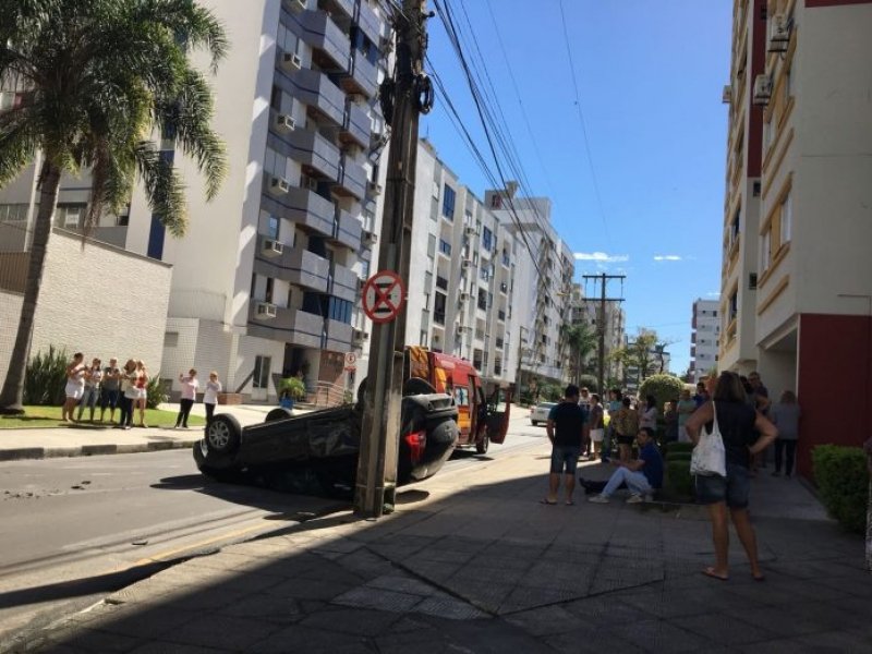 Um acidente fechou a Rua Abílio Paulo, no Centro de Criciúma, na manhã desta quarta-feira (21). Um Renault Sandero capotou após atropelar uma mulher na esquina com a Dolário dos Santos.