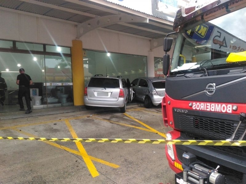 Um carro entrou em uma loja de materiais de construção no bairro Humaitá, em Tubarão, após o condutor passar mal e desmaiar. Antes, ele acabou batendo em outros três veículos.