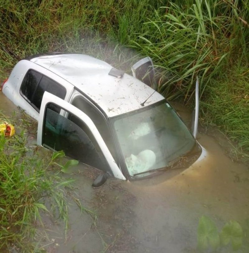 Na tarde deste domingo um veículo que transitava na Rodovia Olívio Cechinel, em Morro da Fumaça, saiu da pista, caiu em um barranco e foi parar em um local com água acumulada, ficando parcialmente submerso.