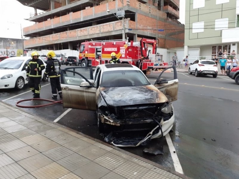 Um veículo pegou fogo na tarde desta sexta-feira (10), em Araranguá. O incêndio iniciou no motor, que foi onde se encontrava a maior parcela das chamas.