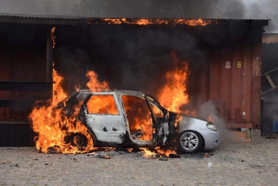 Um veículo Pálio, com placas de Jaguaruna, foi consumido pelas chamas após uma pane elétrica. O veículo estava estacionado no pátio de um posto de gasolina, localizado no Centro de Jaguaruna, na Avenida Duque de Caxias. O fato aconteceu no fim da tarde desta segunda-feira, dia 10. As chamas também atingiram móveis que estavam dentro de uma lanchonete de contêiner, próxima de onde estava o carro.
