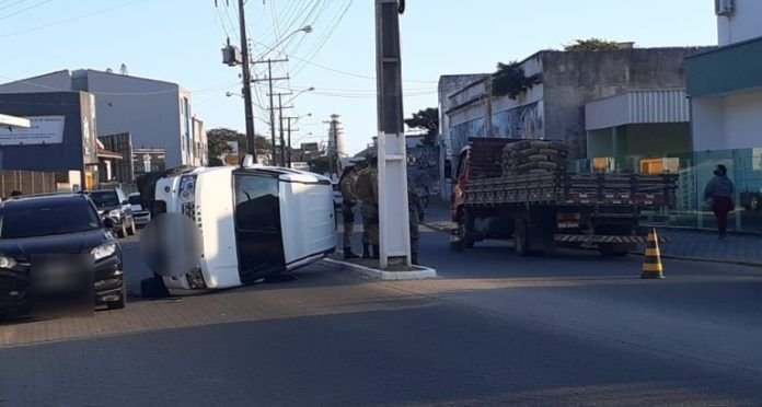 Por volta das 16h, desta terça-feira (26), uma Land Rover, com placas de Laguna, tombou na avenida Colombo Machado Salles, na Cidade Juliana. O acidente ocorreu no sentido bairro Magalhães – centro.