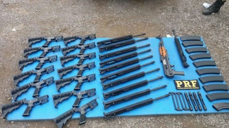 A ocorrência foi registrada por volta das 10h, quando um veículo com placas do Paraguai passava pela 6ª Delegacia da PRF, localizada no km 217 da rodovia federal, onde houve a abordagem. 12 fuzis AR15 e um AK47 foram apreendidos dentro do veículo.